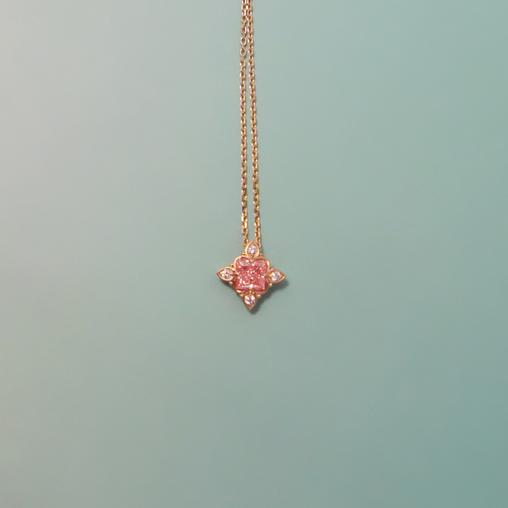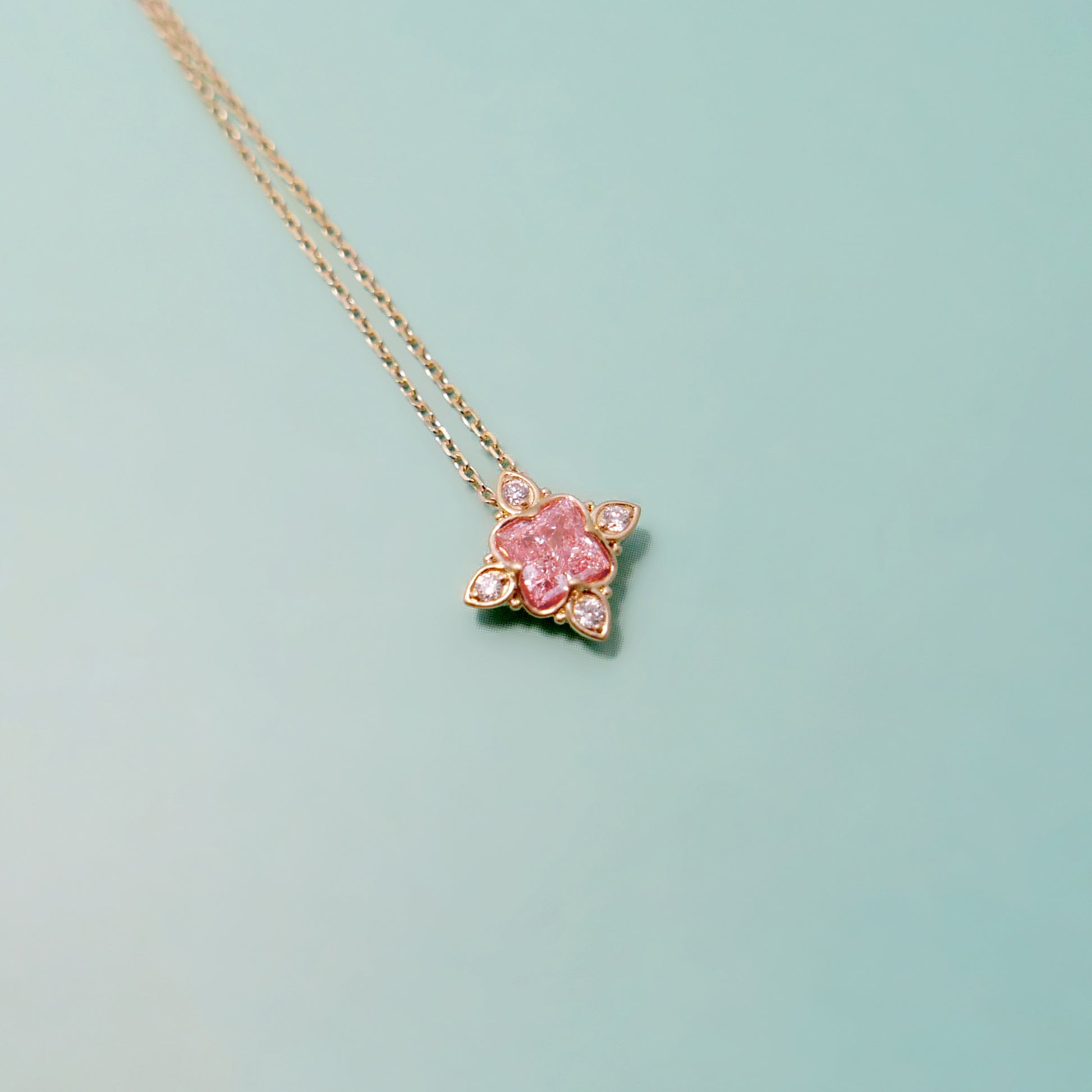 One-Off piece Ready to ship, 3.91mm princess cut lab-grown pink diamond center stone with 4 side diamonds. great for everyday wear and a unique Christmas present 🩷🤍
